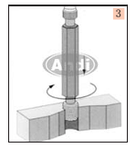 7、 取鋼絲螺套:在安裝過程中出現問題或者由于鋼絲螺套使用時間過久需要取出絲套,應當使用帶有刃的卸套工具對準螺套端口,用榔頭猛打一下,用手加力按下手柄反螺紋旋轉即可退出鋼絲螺套。