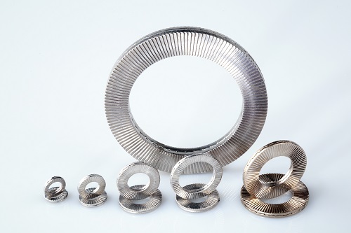雙疊自鎖(鎖緊)墊圈DIN25201是由兩片內(nèi)齒面咬合組成,外側(cè)帶有放射狀的斜細面齒紋,內(nèi)側(cè)為大角度斜齒面。斜齒面的角度大于螺紋角度,當連接件受到振動,螺栓連接會隨著持續(xù)振動發(fā)生松動趨勢,僅允許墊圈內(nèi)側(cè)的斜齒面會產(chǎn)生相對錯動,產(chǎn)生抬升張力,從而達到完全的防松效果。雙疊自鎖(鎖緊)墊圈利用幾何原理,安全鎖緊處于強烈振動的螺栓連接。